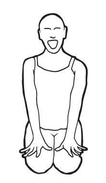 | Kneeling on the floor with their bottom resting on their calves, have them place their hands on the knees and sit up straight (if possible). On an in breath fist the hands towards the chest, scrunch the mouth, eyes, nose and tense the face fully. On the out breath, release it all, extend the hands, open the mouth, stick the tongue right out and give a deep ROARRRRR until there is no breath left to roar. Repeat five times. |